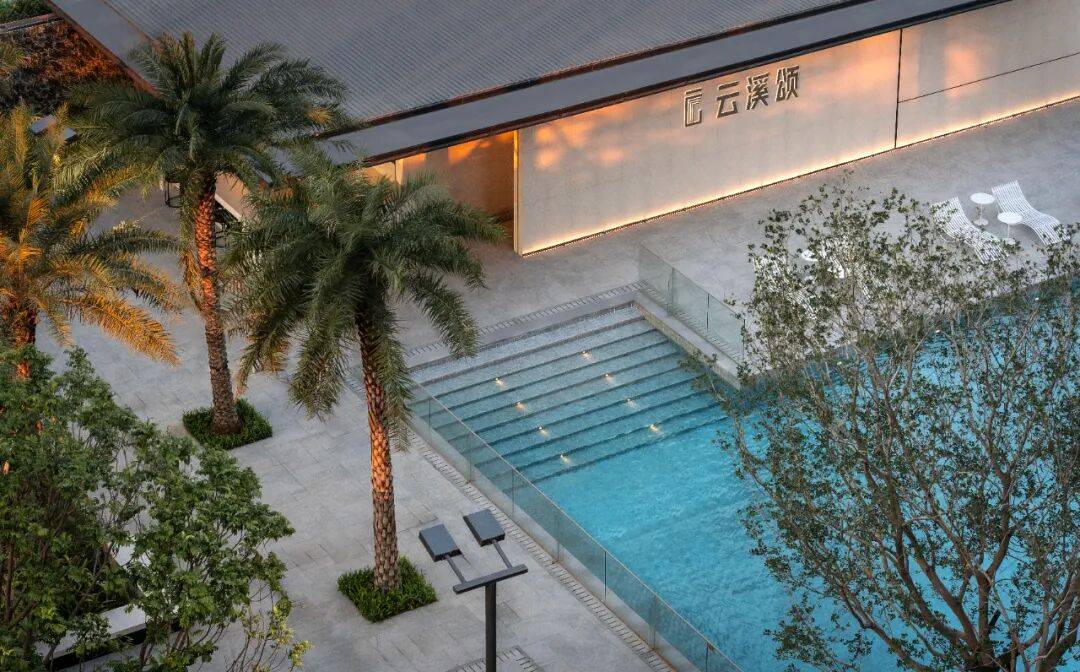 造景上,特意甄选银海枣等热带植物错落排布,舒展的枝叶、浓郁的热带肌理,搭配澄澈泳池水面,全方位还原热带海岛度假氛围,目之所及皆是椰风海韵的松弛感;