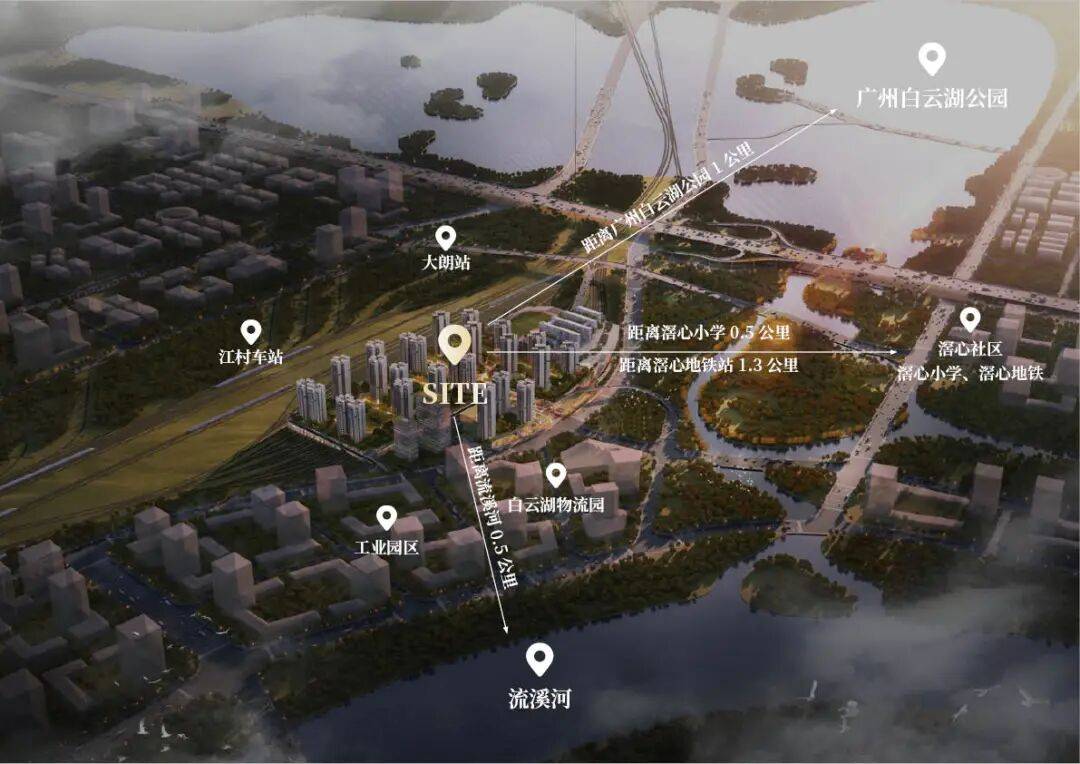 中铁建工&广铁集团双央企联袂匠造。原规划为功能单一的列车整备和检修场所,土地节约集约利用水平不高, 本次规划顺应国家和广东省关于铁路土地综合开发的政策,参考地铁车辆段上盖开发的模式,在客整所上方增加盖板,进行综合开发的高品质全能生活高端综合社区。地处白云湖数字科技城&白云站TOD商圈核心腹地,拥揽高配市域列车、双地铁等多维立体交通,一站式全龄教育/医疗/商业资源,绿色健康活力生态社区,是白云湖畔的人居标杆之作。项 目 概 述