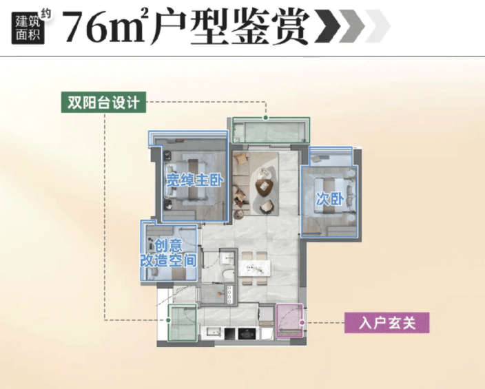 更令人兴奋的是,这样一套神户型的总价仅为296万元起。在白鹅潭这样的核心地段,以不到300万的总价买到三房,简直是不可思议的奇迹。这对于刚刚步入社会的年轻情侣、新婚夫妇或者需要独立空间的小家庭来说,无疑是一个巨大的福音。它不仅降低了购房门槛,更让年轻人有机会在市中心安家落户,享受城市的核心资源。可以说,76㎡三房是新世界天馥献给刚需群体的一份厚礼,是通往幸福生活的金钥匙。