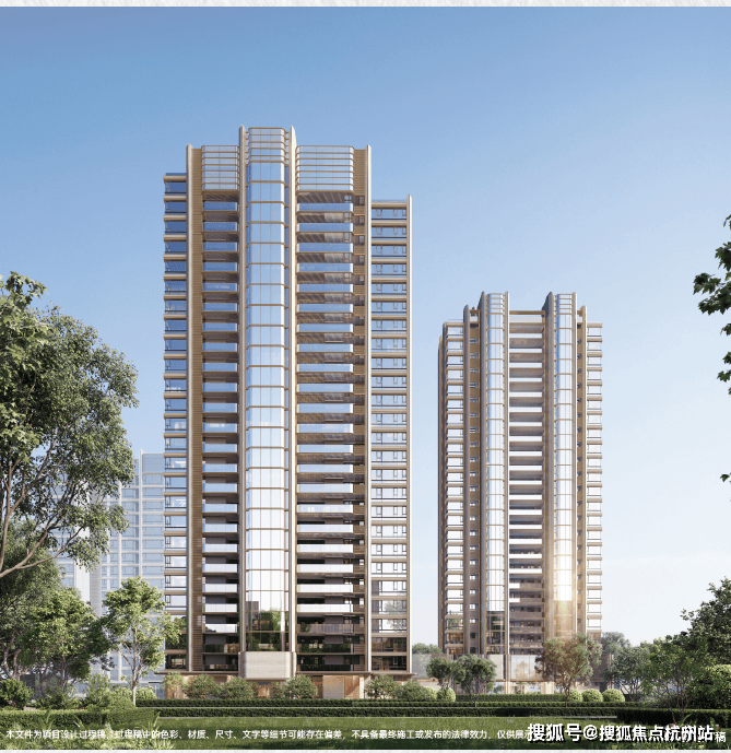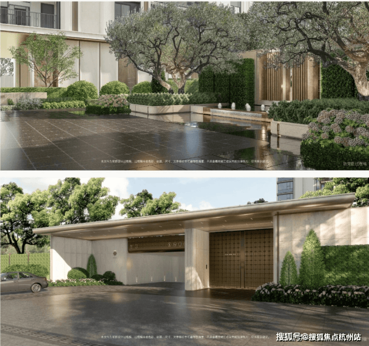 项目打造现代海派风格的外立面,线条简洁大气; 社区规划六重生活体验空间,从酒店式落客入口、镜面水庭到美学花园,旨在将高端酒店的奢享基因融入日常生活。