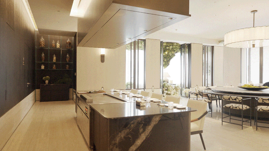 除了泳池,会所还设有专门的私宴厅,按照五星级酒店的规格精心打造。私宴厅内配置了16人超大宴会台、铁板烧岛台、品茗区以及室内景观花房等设施。这里不仅是家庭聚会的理想场所,也是商务宴请的高端平台。无论是举办生日派对、家庭聚餐,还是接待重要客户,私宴厅都能满足各种需求。值得一提的是,会所的餐饮服务由米其林级别的厨师团队定制,涵盖粤菜、川菜、中西餐、日式料理等多种菜系。厨师们选用最新鲜的食材,结合精湛的烹饪技艺,为业主呈上一道道色香味俱全的美食佳肴。