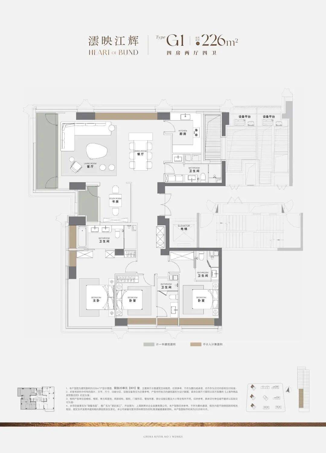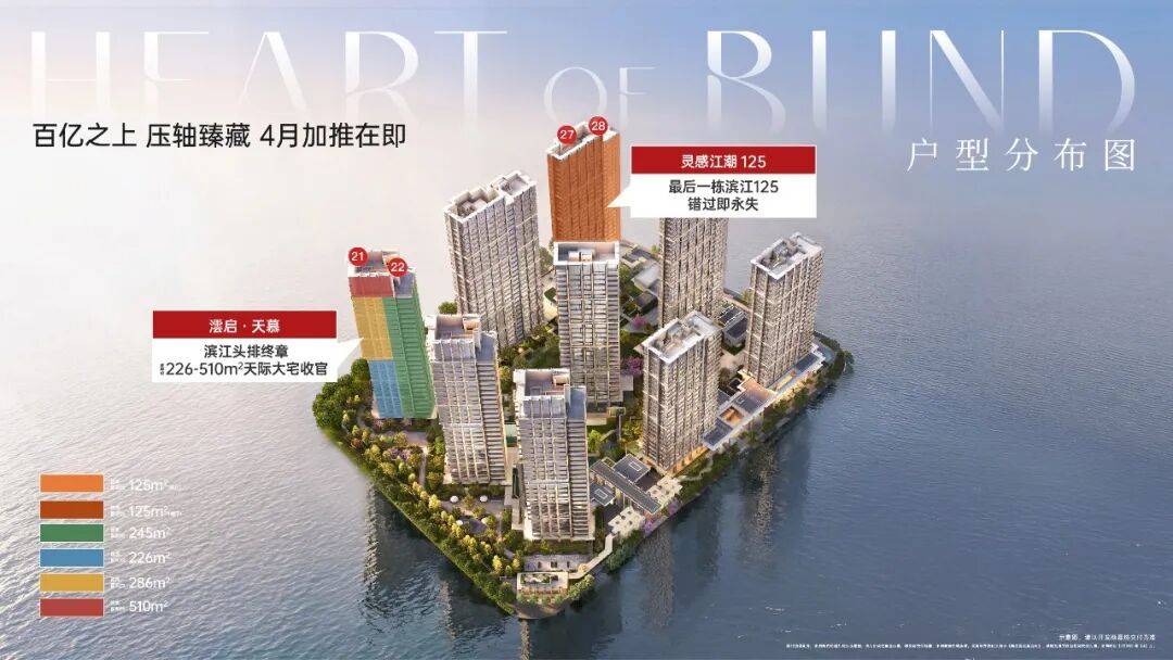 这是整个项目最后一幢一线滨江头排楼栋,包含建面约226㎡、245㎡、286㎡全景舱户型,以及建面约510㎡星空顶复。