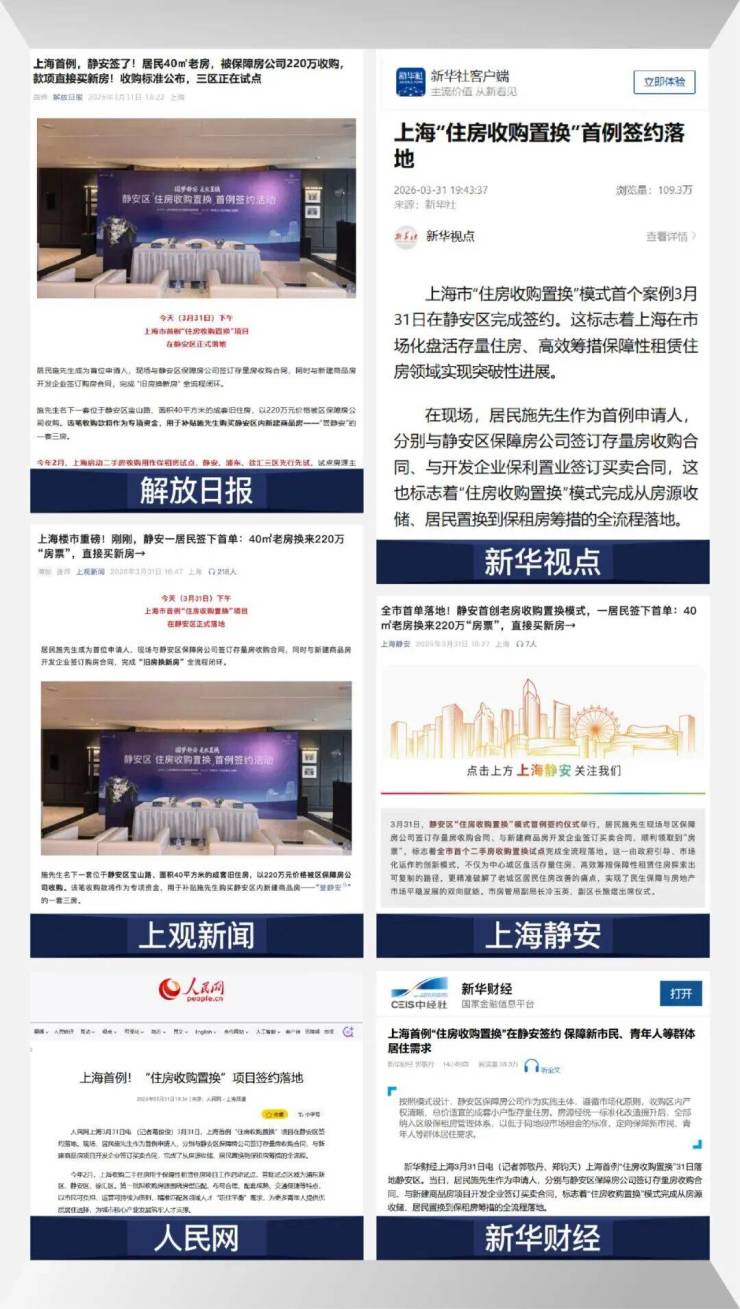 在静安区住房保障和房屋管理局指导下,静安区“住房收购置换”首例签约活动于“誉静安”项目现场圆满举行。面对居民“旧房难卖、置换受阻”的市场痛点,静安区精准施策,针对持有70㎡以内、约400万左右存量房的业主,由政府平台直接收购旧房打通置换堵点。这标志着上海试点收购二手住房用于保障性租赁住房以来,首个“以旧换新”成功案例正式诞生。