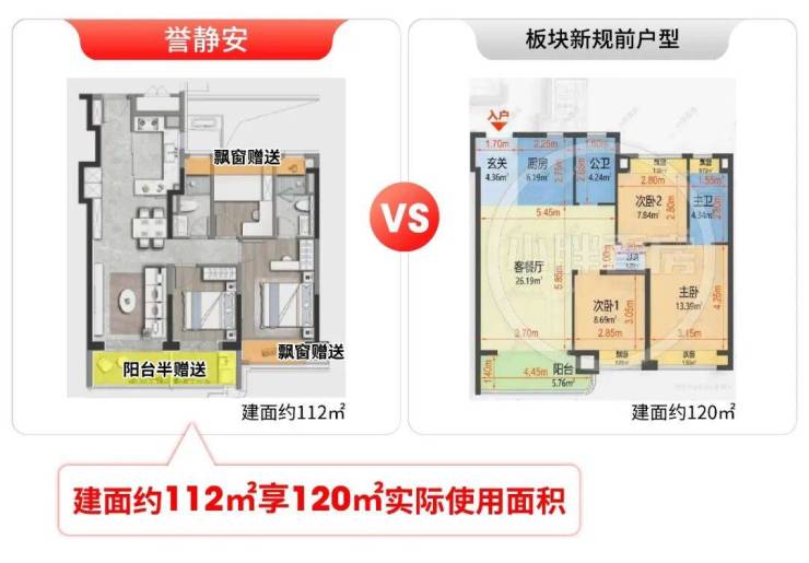 超高实得率。据小胖君测算:建面约112㎡户型,实际使用面积堪比新规前120㎡。