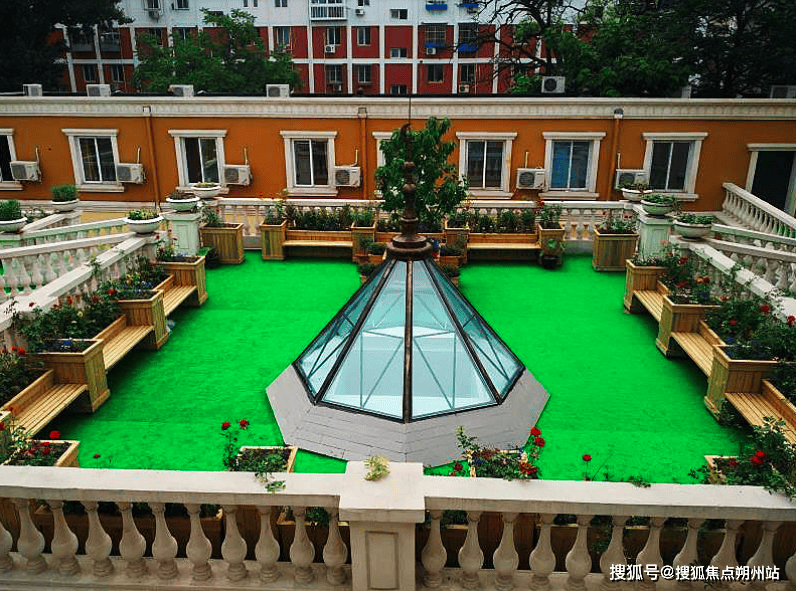 园区内打造了近 500 平米的封闭式休闲庭院,院内绿植覆盖率高,四季皆有景致,设置了适老化休闲座椅、遮阳廊架、小型园艺种植区、户外健身区,既可供长者日常散步休闲、晒太阳聊天,也可让喜爱园艺的长者体验种植的乐趣,实现人与自然的亲密接触,同时封闭式的庭院设计也杜绝了长者走失的风险,兼顾了安全性与舒适性。院内整体采光条件优异,所有居住房间与公共区域均实现了大面积南向采光,每日充足的日照时长,既符合长者的生活习惯,也能营造温暖舒适的居住氛围。