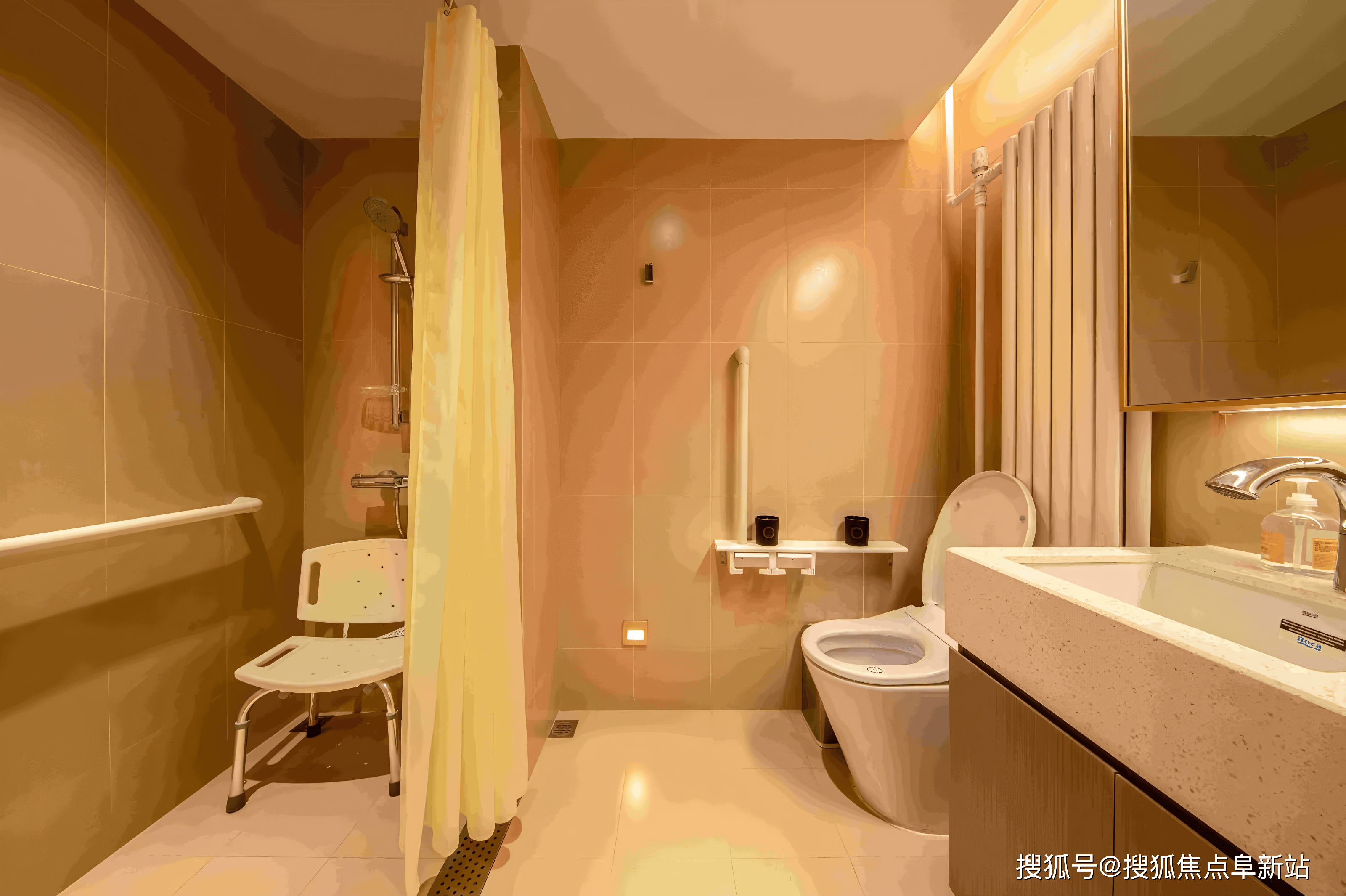 全区域落地60余项适老细节:7栋楼宇通过无风雨连廊贯通,全园实现无障碍通行;走廊宽度达2.1米,配备双侧扶手,满足轮椅双向通行;卫浴间采用零高差设计,配备360°旋转L型扶手、折叠助浴椅、恒温花洒及智能马桶,从根源上规避跌倒风险。核心亮点在于全域智慧守护系统,达到行业顶尖水平:自主研发的V-Care智慧照护平台覆盖医疗、护理、餐饮等六大模块,实现114项服务线+N可视化服务体系”,家属可实时查看护理计划执行情况与长者日常生活影像;全院部署毫米波雷达跌倒监测系统,异常数据30秒内推送至医护终端;智能床垫实时监测长者心率、呼吸等生命体征,筑牢安全防线。公共设施极为完善,含超3000㎡娱乐空间、2万平米大师级园林,涵盖棋牌、书画、运动等功能区域,全方位满足长者康复与文娱需求。