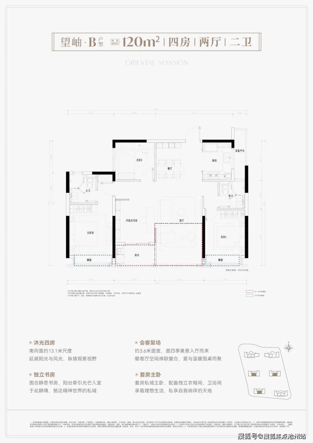 建面约120方户型:这款户型设计非常不错,在这个120方的面积段里不仅做了四房设计,而且还是四开间朝南,南向采光非常好。✅鸣澜里售楼处电线 咨询|全程协助】