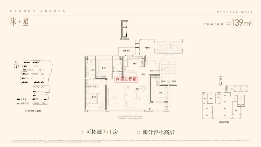 最新的139㎡户型样板间风格更为年轻雅致,就连卫浴台盆的材质细节,也为了整体协调而优化调整。外立面与公区选用质感材料,室内配置一线品牌,体现统一的品质追求。