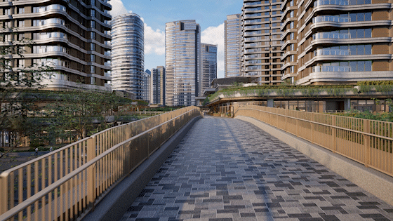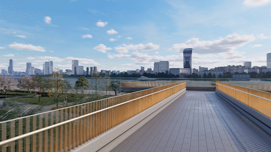 未来业主无需计划、无需过马路,在会所入口买一杯咖啡,电梯到二楼大堂后,通过闸机、穿过廊桥就是江面。