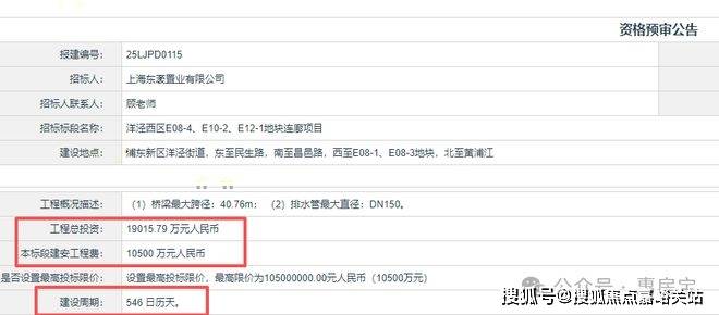 11月上海市建设市场信息服务平台发布“洋泾西区E08-4、E10-2、E12-1地块连廊项目”资格预审公告,显示项目已进入工程实施前的招采推进阶段